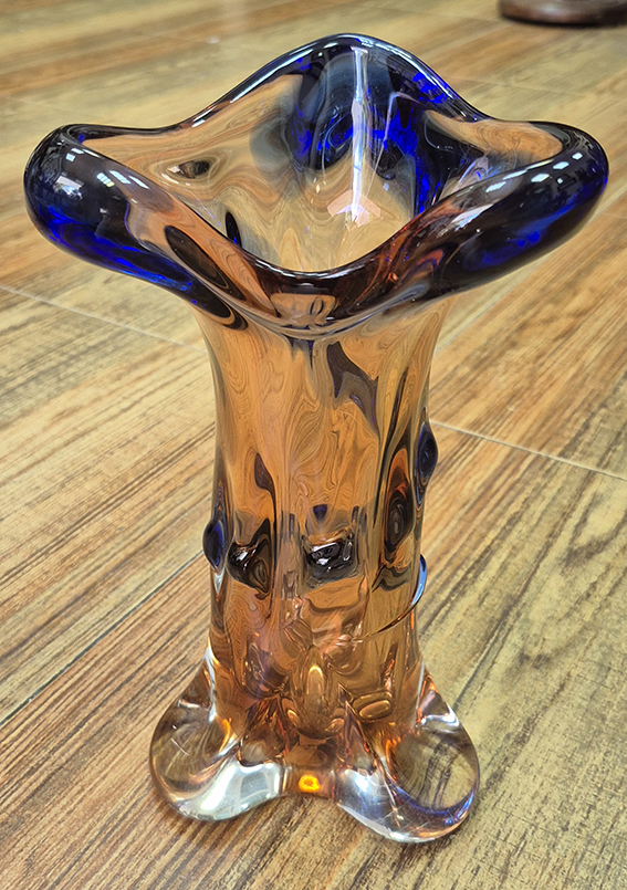9951 אגרטל זכוכית קובלט בורדו ייחודי בצורת פטריה גובה 32 ס"מ קוטר עליון 9 ס"מ,