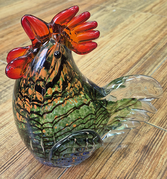 600005- תרנגול יפייפה אומנות הזכוכית של מורנו איטליה צבעי מולטי קולור גדול ומרהיב 20*20 ס"מ ב 450 ש' בלבד