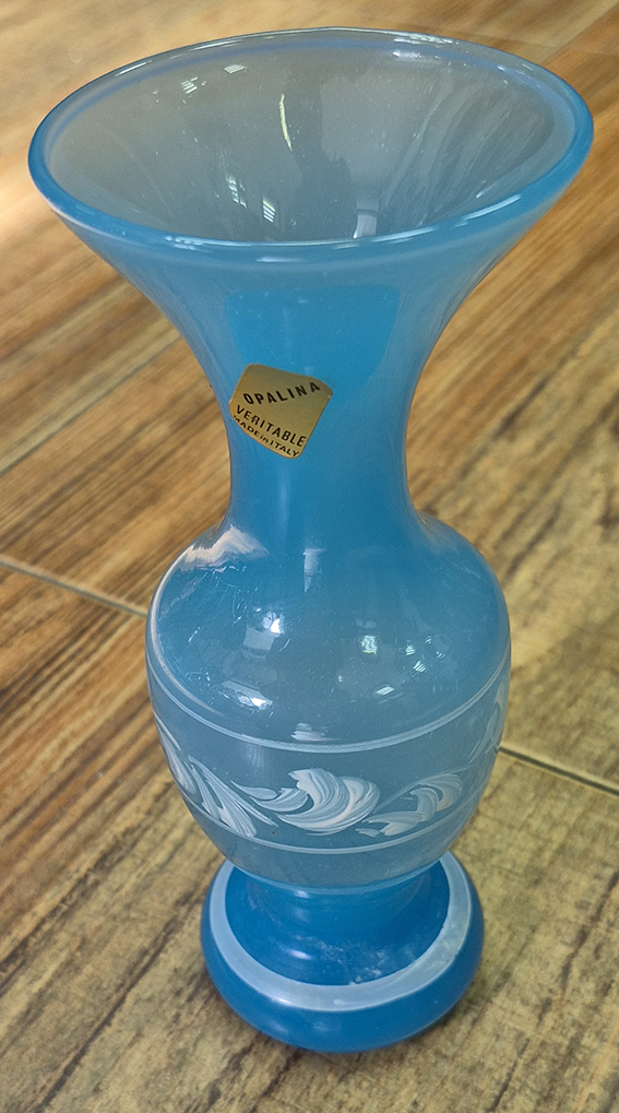 70002- אגרטל זכוכית אופוליסטית ציור עבודת יד תוצרת איטליה חתום גובה 17 ס,מ ב150 ש' בלבד