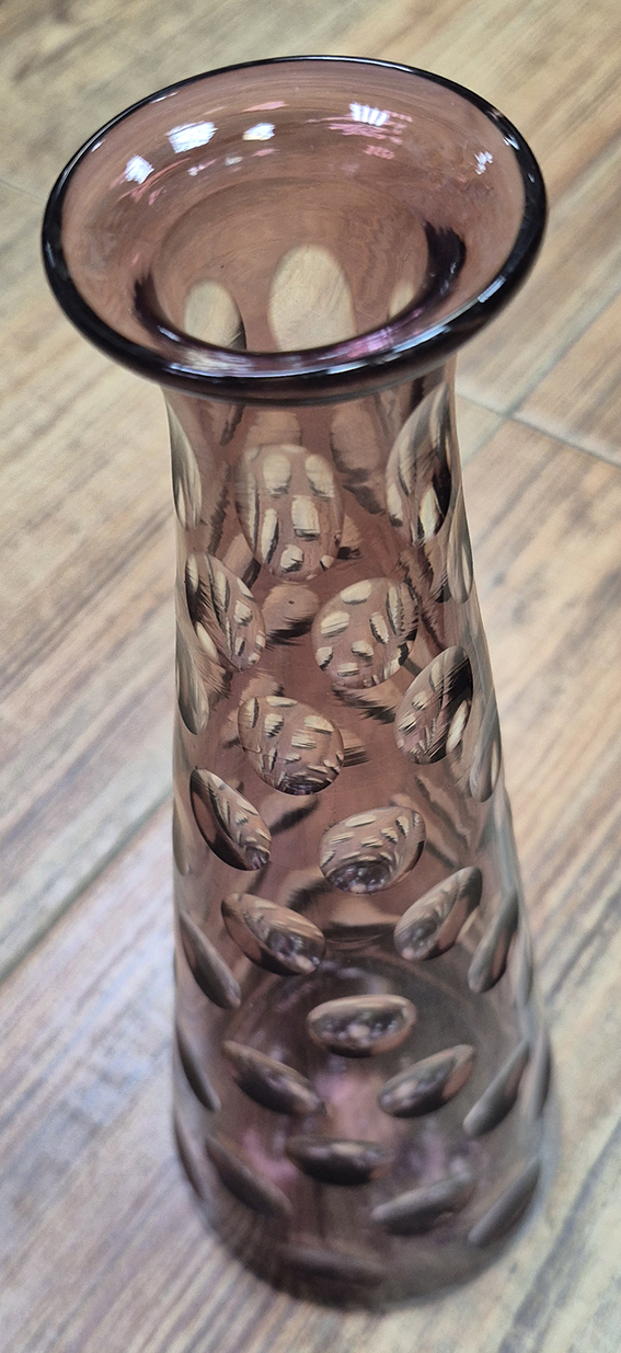 6000033- אגרטל זכוכית צ'כי בוהמיה,וינטאג' אלגנטי מרשים ליטוש עבודת יד גובה 26 ס"מ ב250 ש' בלבד