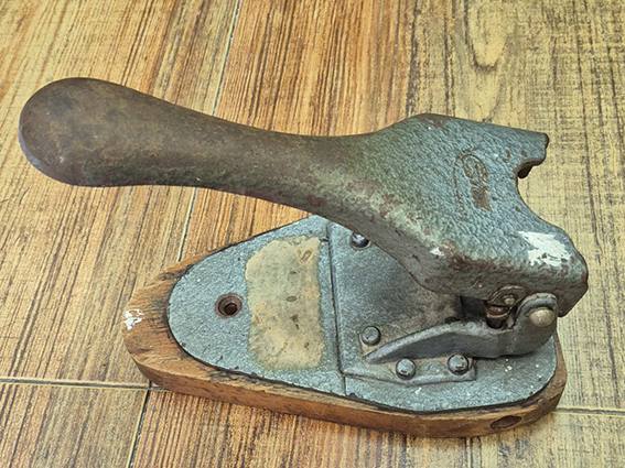 600003- מהדק משרדי גדול עתיק מברזל יצוק על בסיס עץ שבדי, 14*24 ס"מ ב100 ש' בלבד