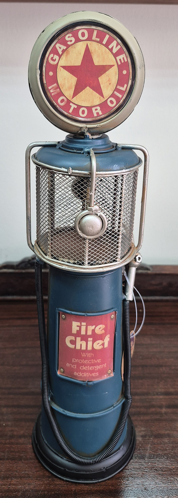 700028- וינטאג אמרקאי משאבת דלק מרהיבה של גסולין מוטור ממתכת צבועה צבעי אפוקסי גובה 36 ס"מ קוטר 10 ס"מ ב 250 ש' בלבד