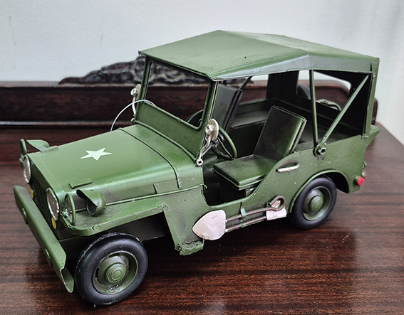 700029- וינטאג ג'יפ צבאי אמרקאי ממלחמת העולם ה2 עשוי ממתכת צבוע בצבעי אפוקסי עמידים אורך 24 ס"מ ב220 ש' בלבד