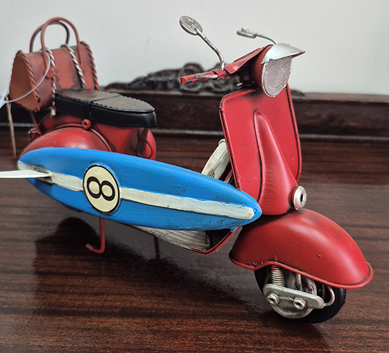 700030- וינטאג של שנות ה70 ילדי הפרחים למברטה אדומה עם סירת מפרש עשויה ממתכת אורך 25 ס"מ ב 200 ש' בלבד